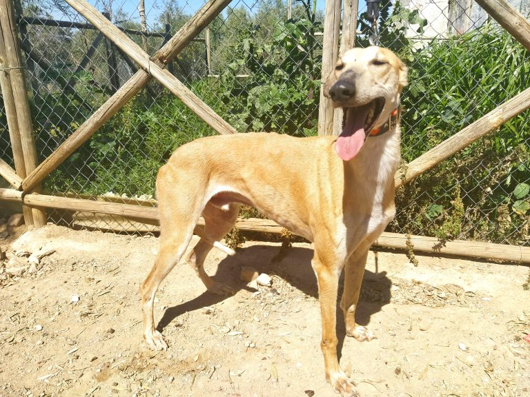 Aitor es un galgo muy tierno y cariñoso. Es sociable y sumiso con otros perros, muy lindo y noble de carácter. Su adaptación es fácil al ser un perro equilibrado, apto para principiantes.