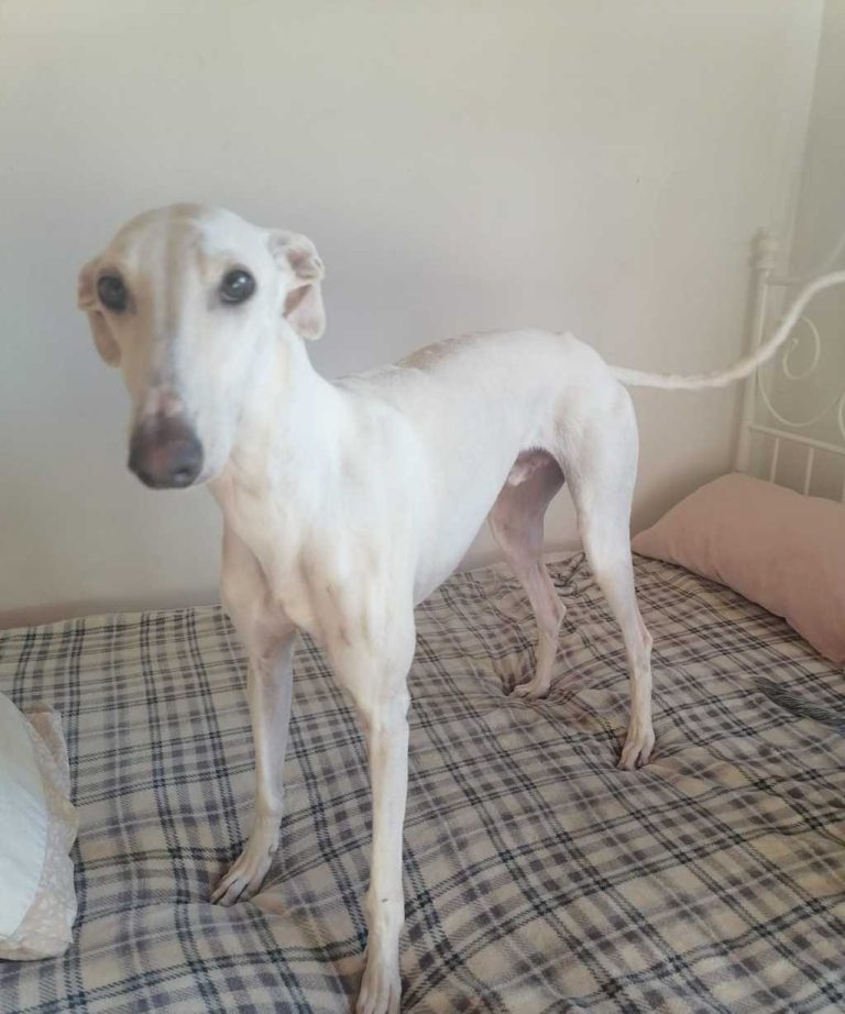 Arán es un galguito muy bueno, simpático, alegre y juguetón. Es sociable y noble, vive en una casa en acogida en Barcelona así que está acostumbrado a convivir con otros perros y a las normas de un hogar. En el parque es muy juguetón y activo, y en casa le encanta dormir en su sofá. Con otros perros es sociable y sumiso, no dominante y juguetón. Fácil, apto para principiantes que busquen perro de actividad alta, preferiblemente que haya otros perros juguetones con él.