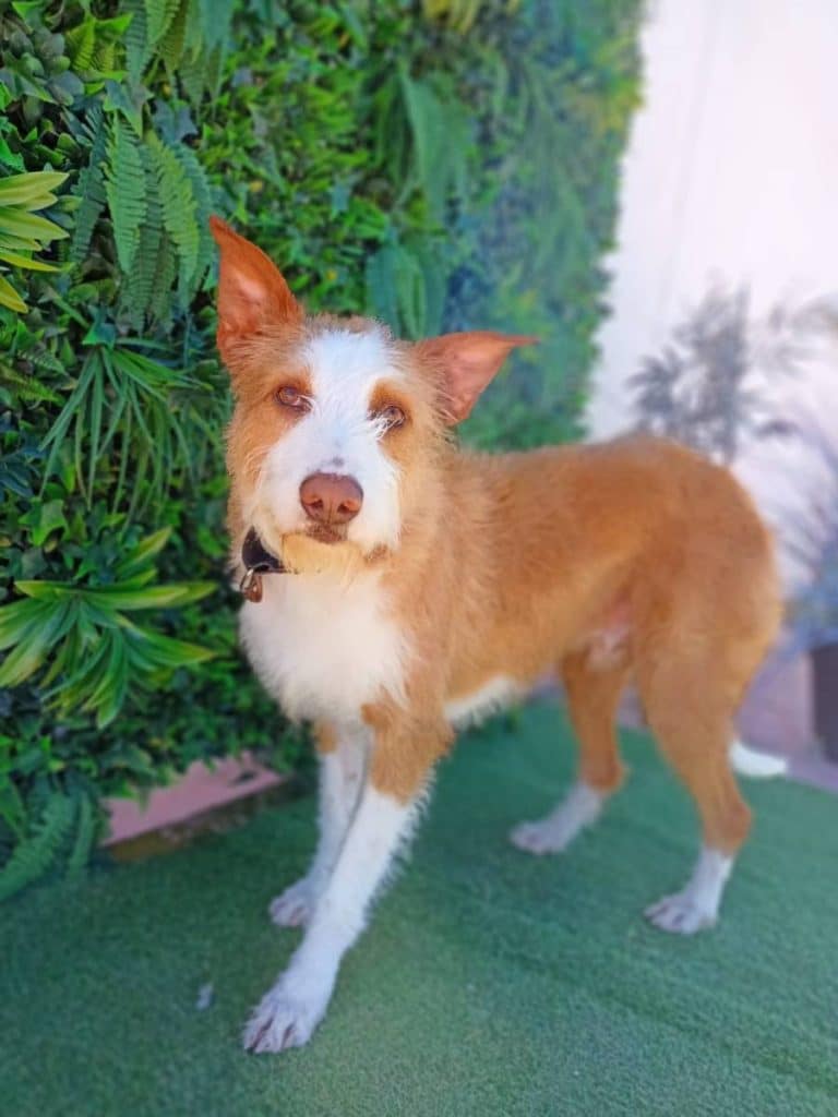 Finnley es un podenco campanero rescatado de una rehala, donde un cazador lo tenía junto a otros muchos podencos en muy malas condiciones.