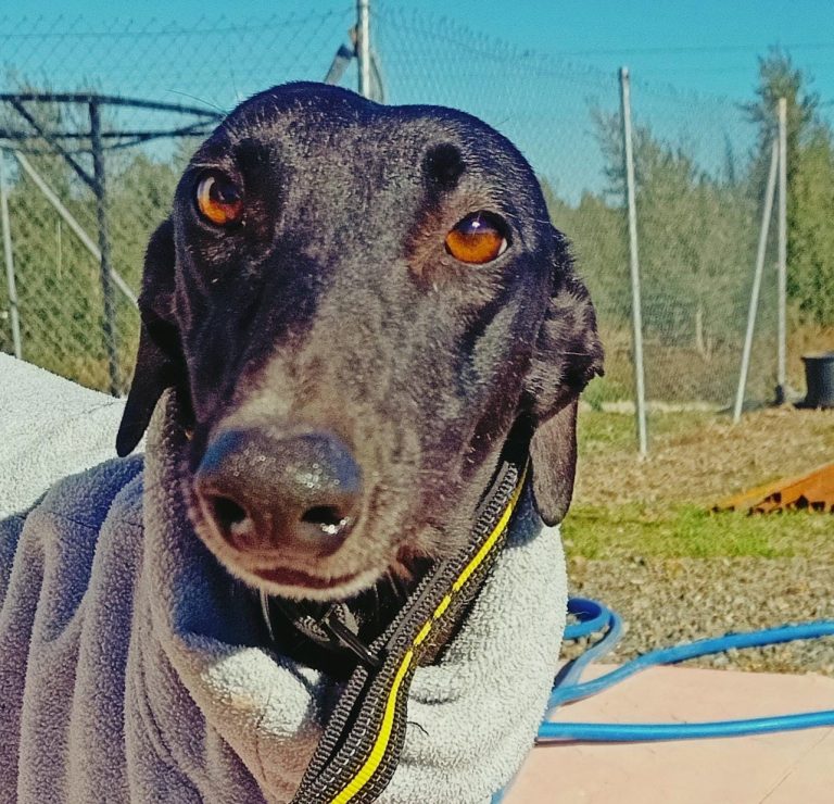 Ifi es una galguita muy buena, simpática, alegre y sin miedos, es la típica galguita feliz que se relaciona con todas las personas que acaba de conocer sin timidez.