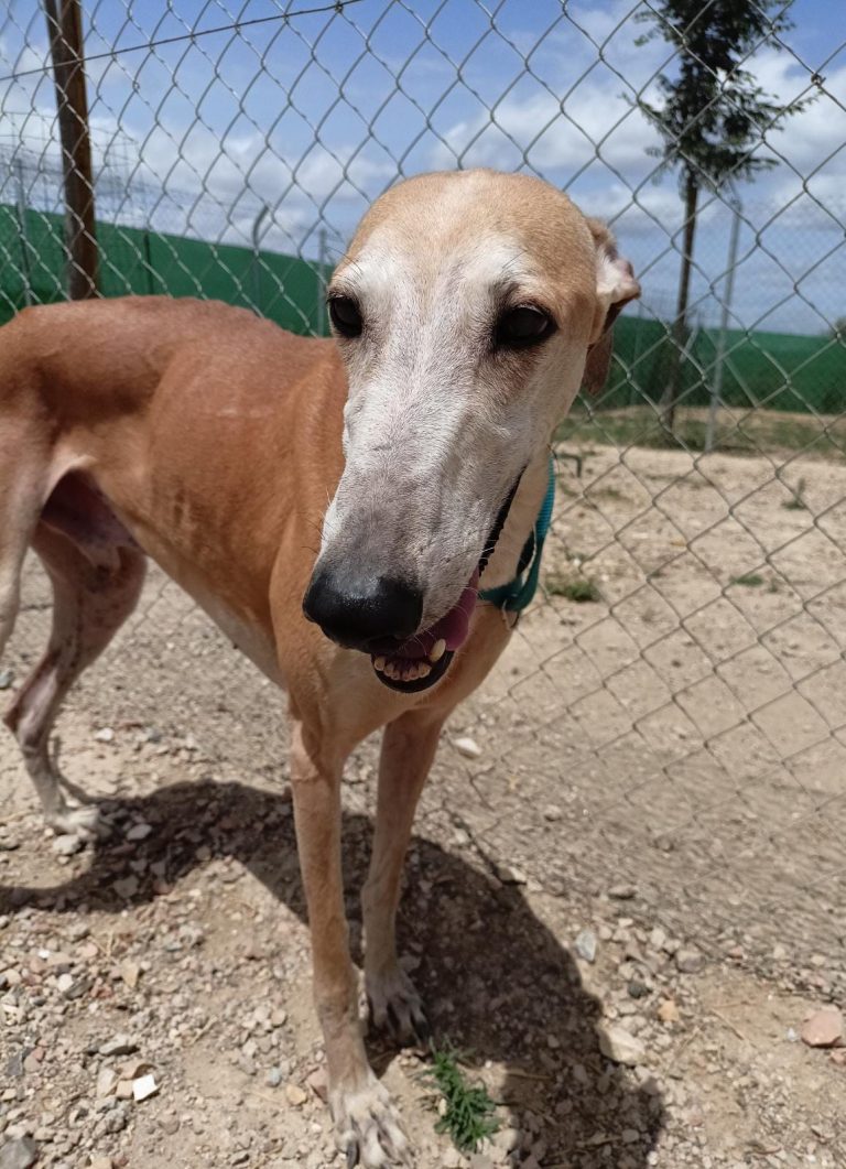 Kaleb es un macho muy simpático y bueno, con un carácter alegre pero no es activo, es decir, a ratos le gusta jugar y siempre está contento mientras hay gente con él pero en general es un galgo tranquilo y dormilón.  Es muy mimoso y sociable, no tiene miedos. Con otros perros también es sociable y sumiso, no dominante.