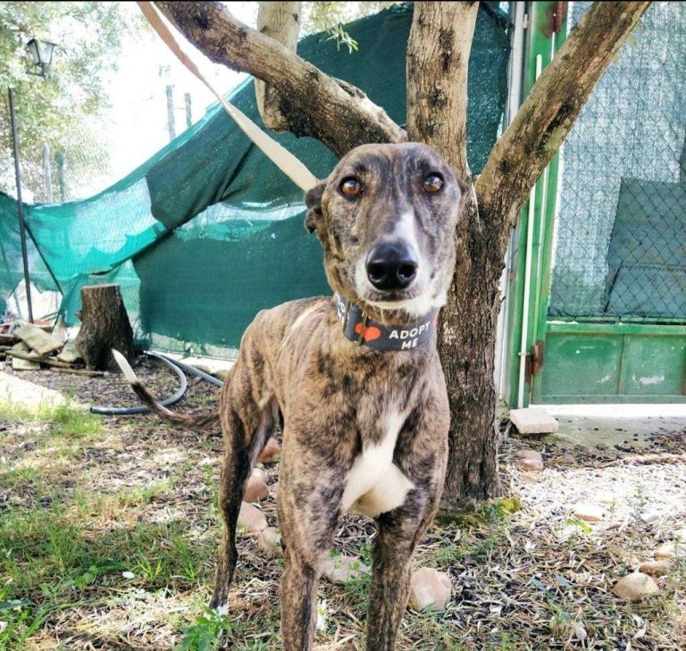 Es una galguita muy simpática, juguetona y cariñosa. No es miedosa aunque al principio puede ser un poco insegura, pero se acostumbra rápido. Después es muy alegre y juguetona, una perrita muy divertida. Con otros perros se comporta sumisa y sociable, no dominante ni con miedos.