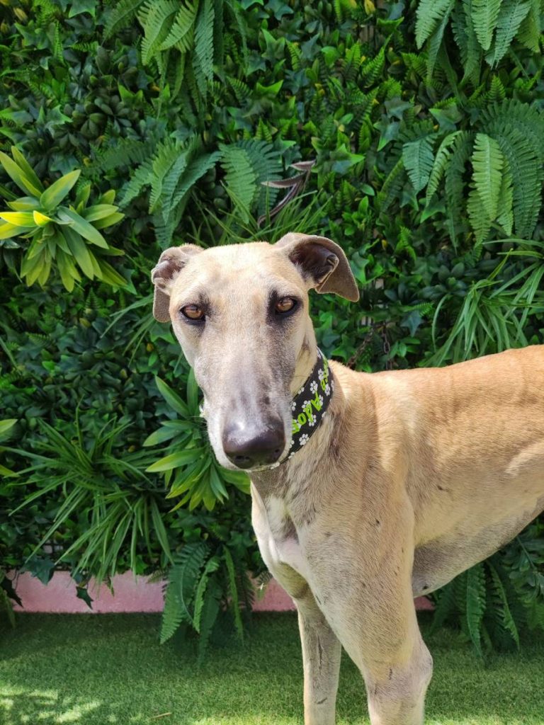 Mireia es una galga muy buena, tranquila, cariñosa, es una perra fácil, que se adapta bien a situaciones nuevas, aunque puede ser en un principio un poco insegura, pero no asustada o en pánico, sólo es algo más cautelosa y en nada ya se le pasa y es abierta y simpática. Puede vivir sola como perra única o convivir con otros perros sin problema. No es muy activa y es una perra de fácil convivencia, apta para principiantes.