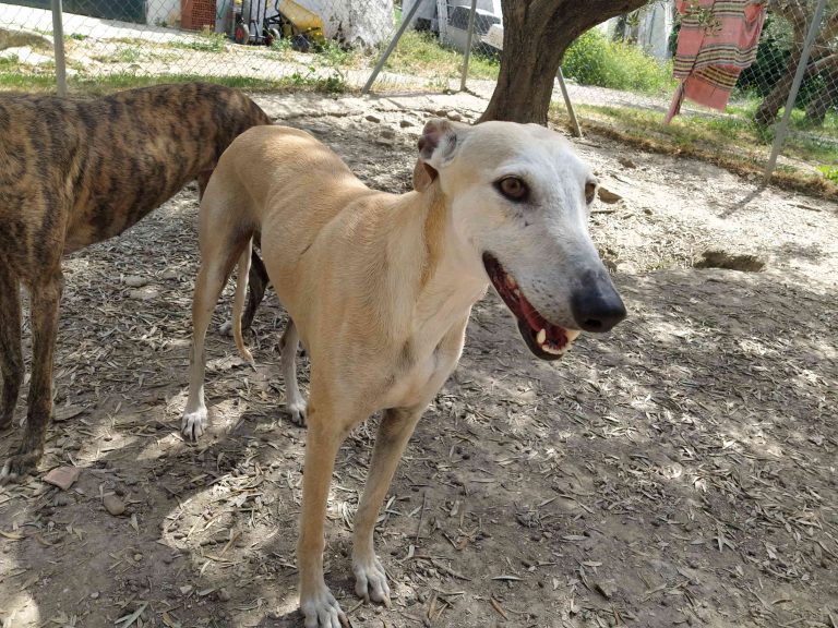Es una galguita muy dulce, tierna, noble y muy tranquila. Es cariñosa, le encanta estar cerca de la gente para recibir caricias, y con otros perros es muy sociable y sumisa. Fácil, apta para principiantes, sola o con otros perros.
