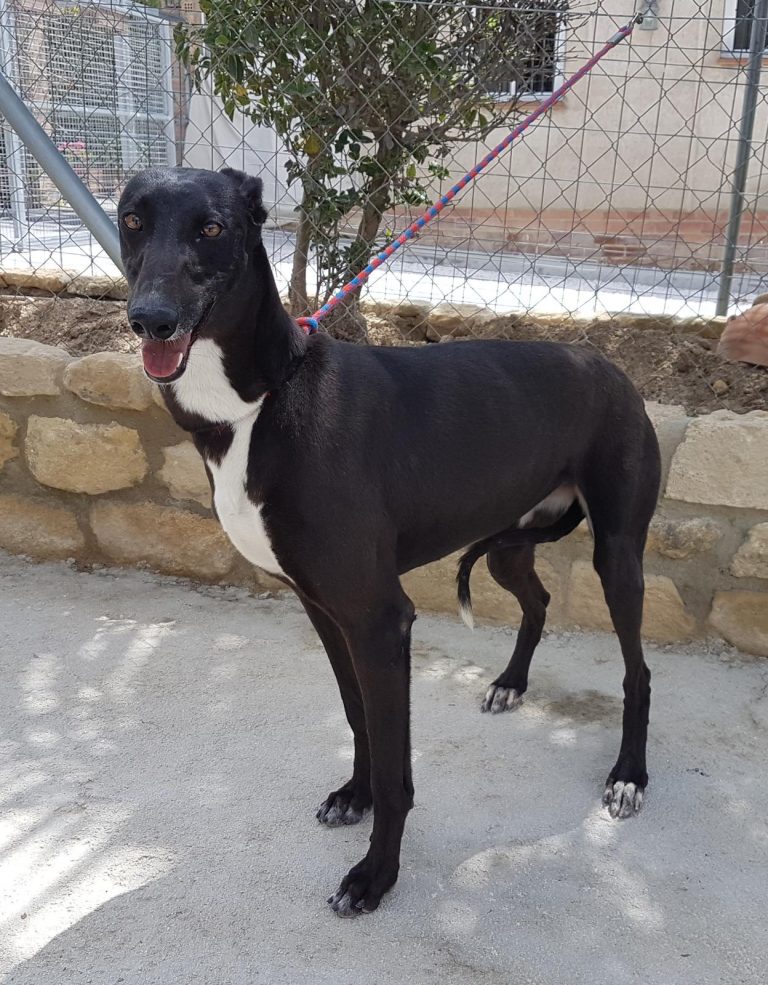 juguetona (con otros perros). muy tímida. para familias con experiencia con galgos tímidos. mejor para familias con más perros.