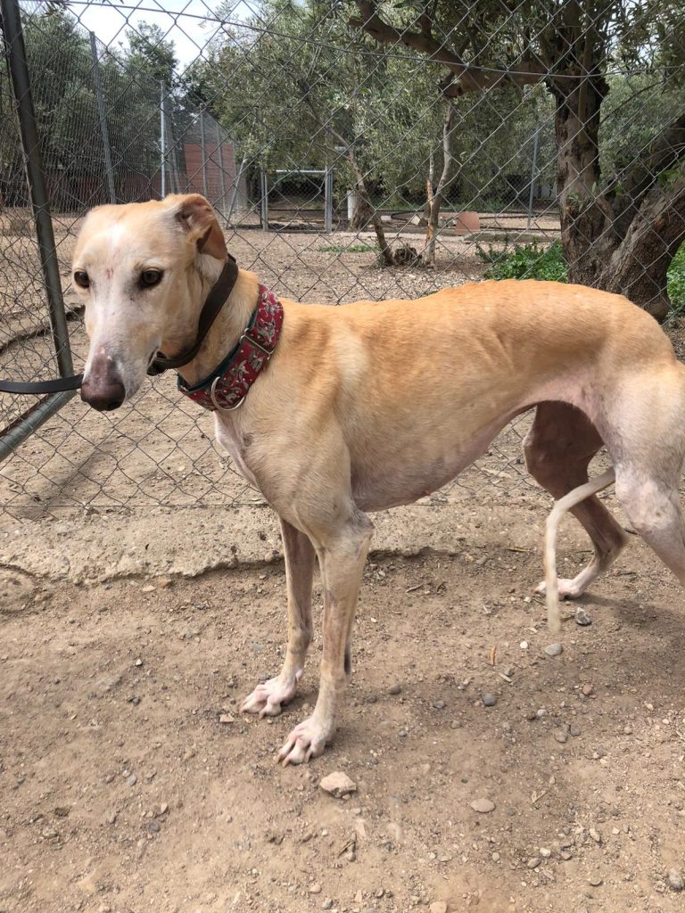 perra tímida al principio pero muy recuperable, con otros perros es perfecta, amigable serena y tranquila, mejor para incluir en grupo de perros ya establecido que como perra única, con las personas necesita tiempo y altas dosis de amor.