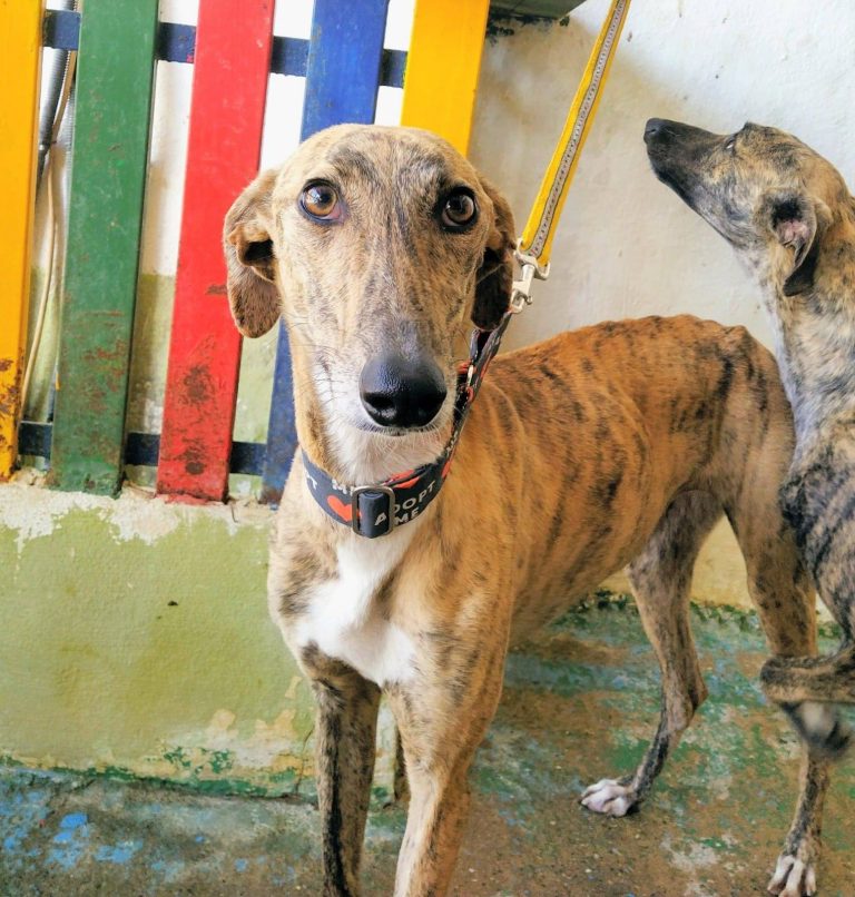Verona es una perrita muy simpática, buena, juguetona y dócil. Es adorable, una galga muy cariñosa y linda, un poco activa aún sobre todo por su edad. Con otros perros es muy sociable, sumisa. Fácil, un poco juguetona pero apta para principiantes si le dan actividad, y mejor con otros perros.
