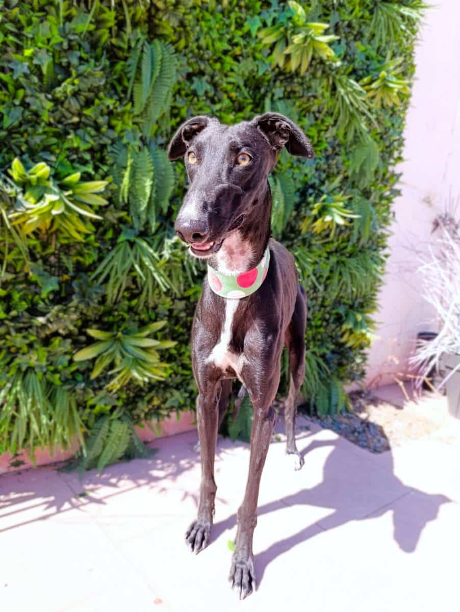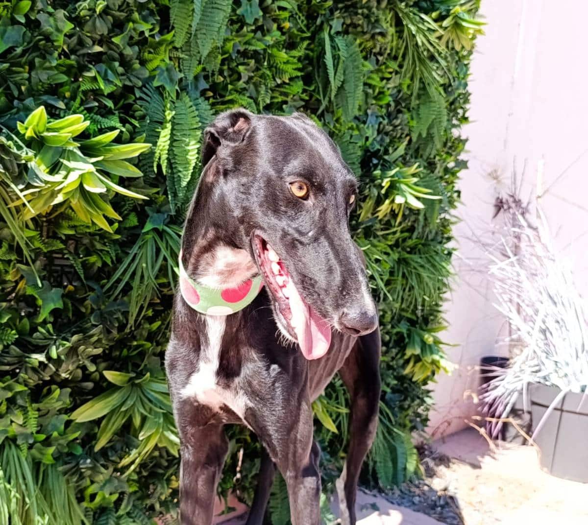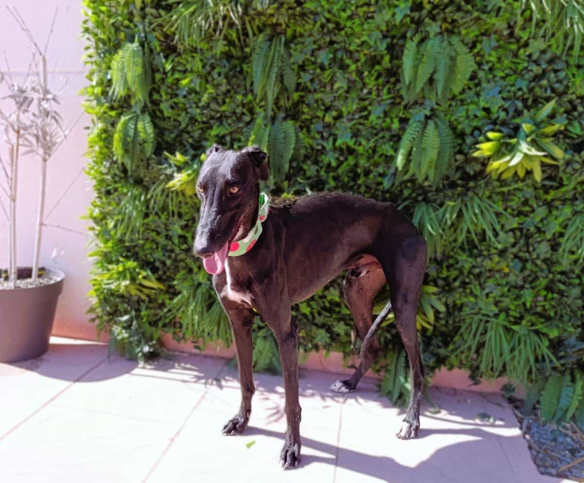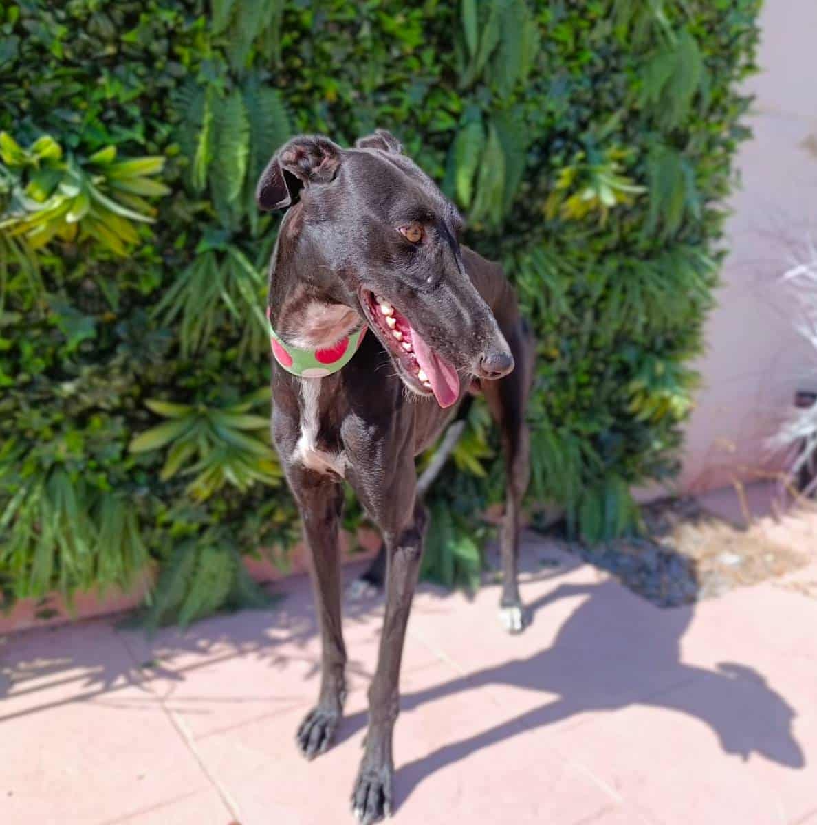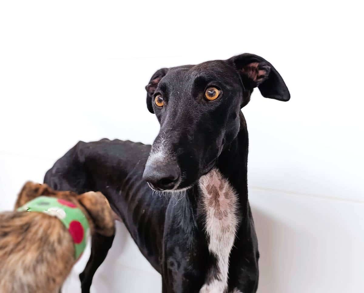 muy bueno, es un galgo sociable, sin miedos, y de carácter amigable. Es alegre y feliz pero no es activo, se lleva genial tanto con perros tranquilos, miedosos o dominantes, como con otros más alegres como él. Siempre es sumiso, no dominante. Un galgo fácil apto para principiantes, posiblemente pueda vivir solo pero como lleva pocos días en el refugio valoraremos de nuevo su carácter según veamos su evolución.