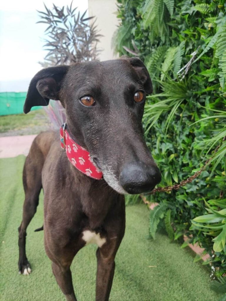 Es un perro muy bueno, tranquilo, sociable, quizás es un poco inseguro en situaciones nuevas o estresantes, pero no en pánico o asustado, sólo es más cauteloso y necesita algo de tiempo para adaptarse en estas situaciones. No es un perro miedoso y en cuanto se acostumbra y te conoce es un perro super fácil, tranquilo y cariñoso. Apto para principiantes en galgos con alguna experiencia con perros. Es sociable con todo tipo de perros y puede adaptarse a vivir solo o a integrarse en un grupo sin ningún problema.