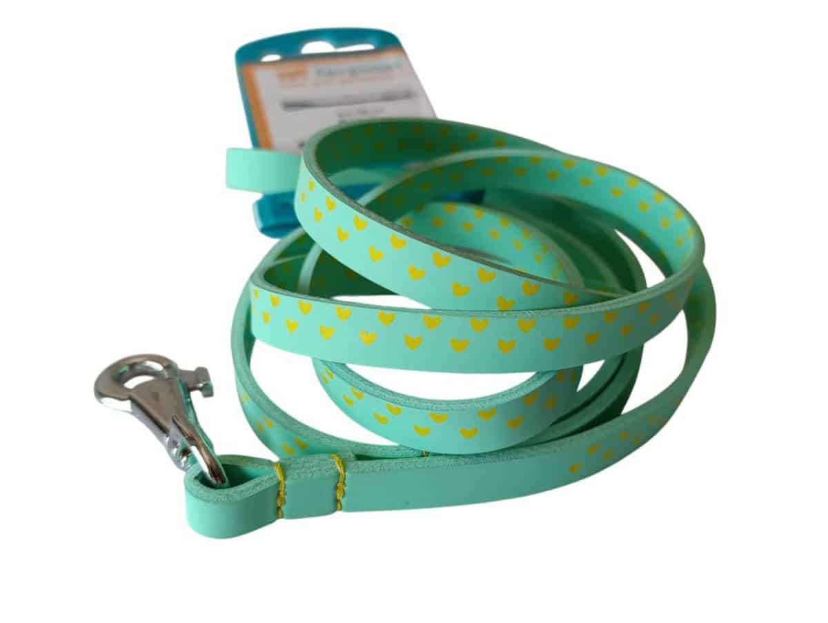 Correas para paseo de perros pequeños-medianos. Tienen un diseño muy bonito color verde agua con discretos corazones amarillos.