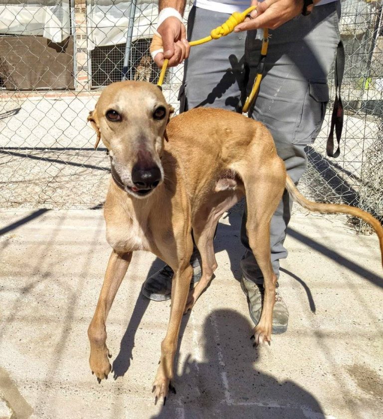 Anubis es un galgo muy simpático, alegre y cariñoso. Es muy sociable y juguetón con otros perros, perfecto para familias con algo de experiencia que sepan hacerle gastar la energía fuera de casa.