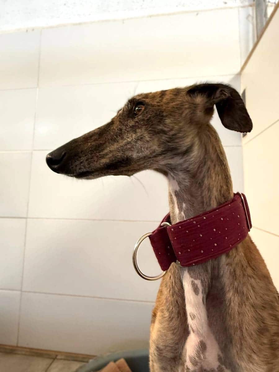 Es una galga cariñosa, muy dulce y sociable. Al principio es más tímida, necesita tiempo para adaptarse a los cambios y conocer a las personas aunque no llega a ser una galga asustadiza, y cuando ya se ha adaptado es cariñosa y dulce. Funciona mucho mejor acompañada de otros perros, se siente mucho más segura y se relaciona mejor incluso con personas que no conoce si se siente respaldada por otros.