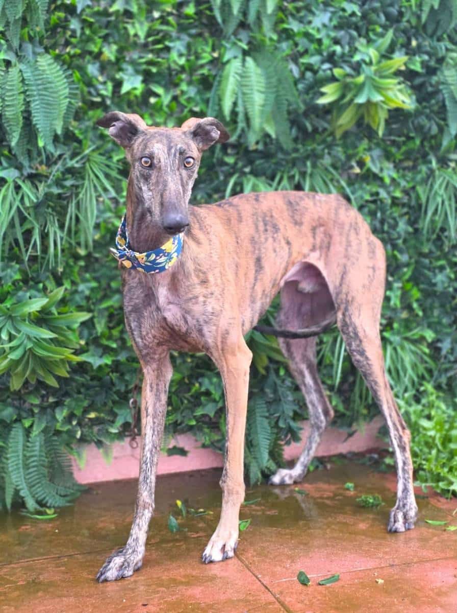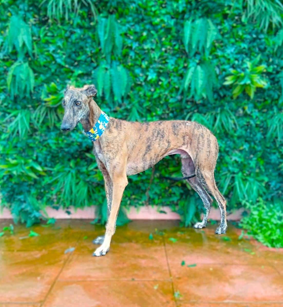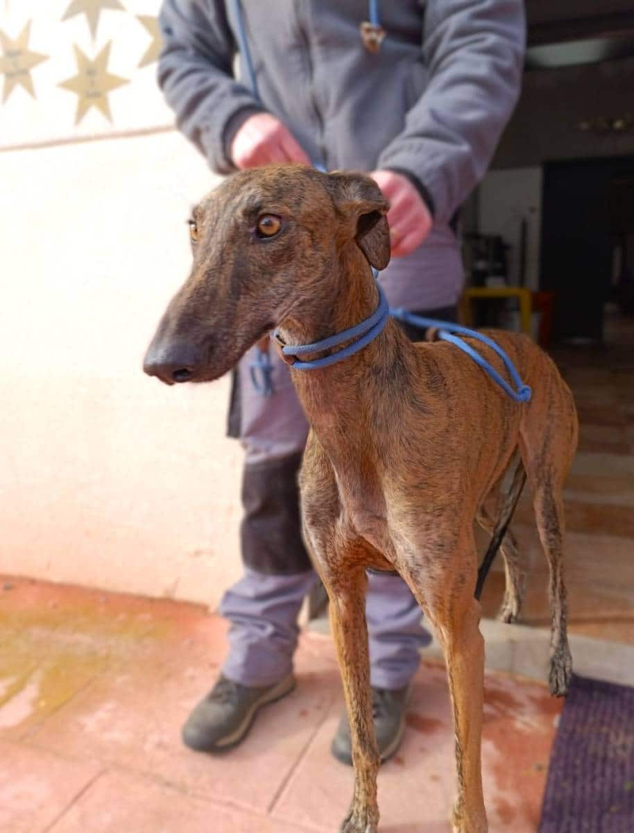 Robe es un galgo precioso y muy bueno, de carácter tímido. No está completamente asustado pero es tímido y seguidor, así que tendría que ir adoptado a una familia con experiencia en perros asustadizo y que tengan al menos otro perro en casa, porque Robe se siente mucho más seguro cuando está acompañado.