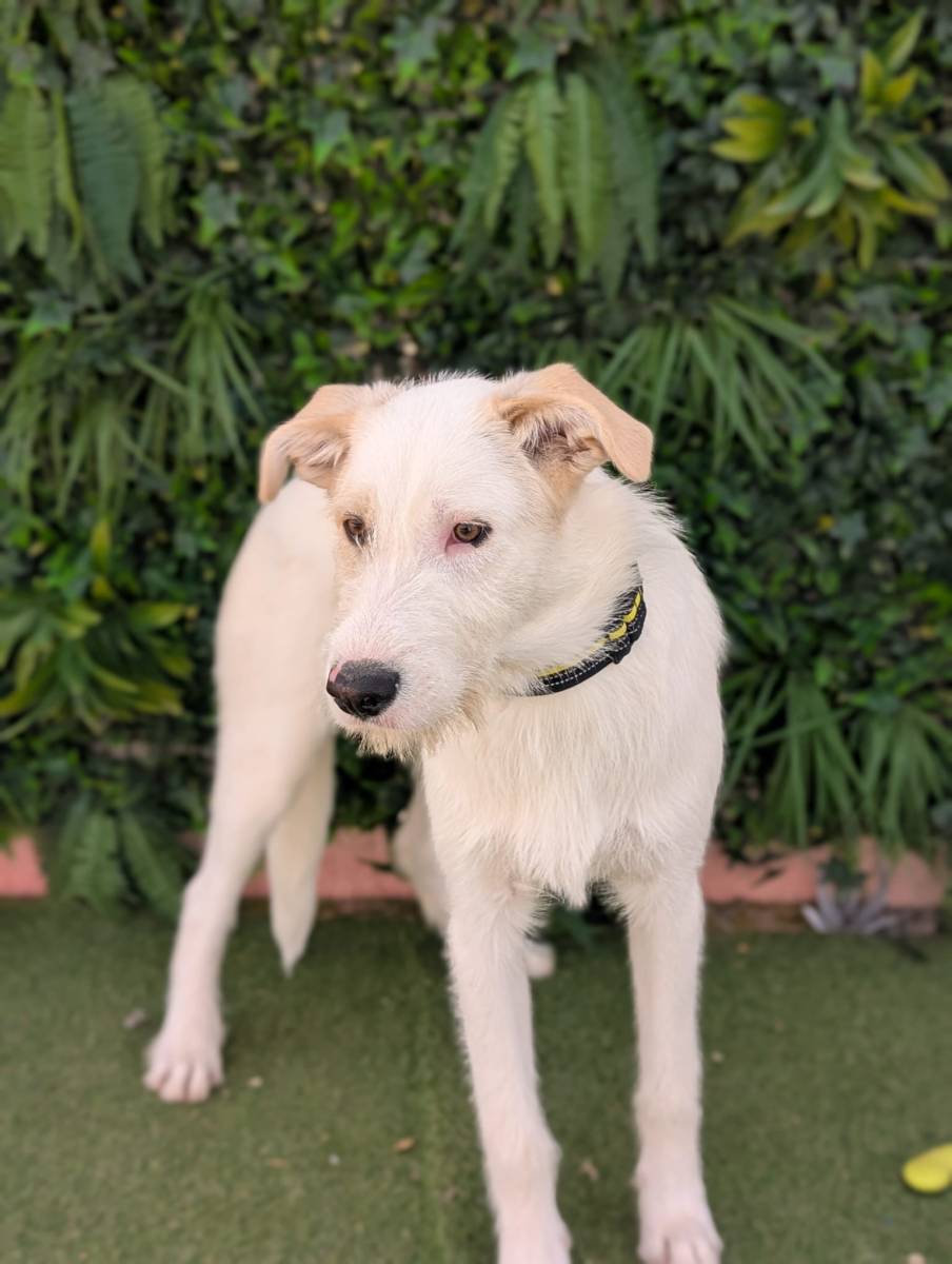 Es un cachorrón de tamaño grande y carácter juguetón, activo, simpático y muy gracioso. Como no conoce más vida que el refugio, necesitará tiempo para adaptarse a la ciudad, a las nuevas rutinas y a personas nuevas, pero es tan simpático que seguro que con un poco de tiempo y paciencia se podrá adaptar bien. Y al ser tan joven y juguetón, para él sería mucho mejor encontrar una familia que tenga otro perro en casa con el que entretenerse y que le ayude a adaptarse mejor.